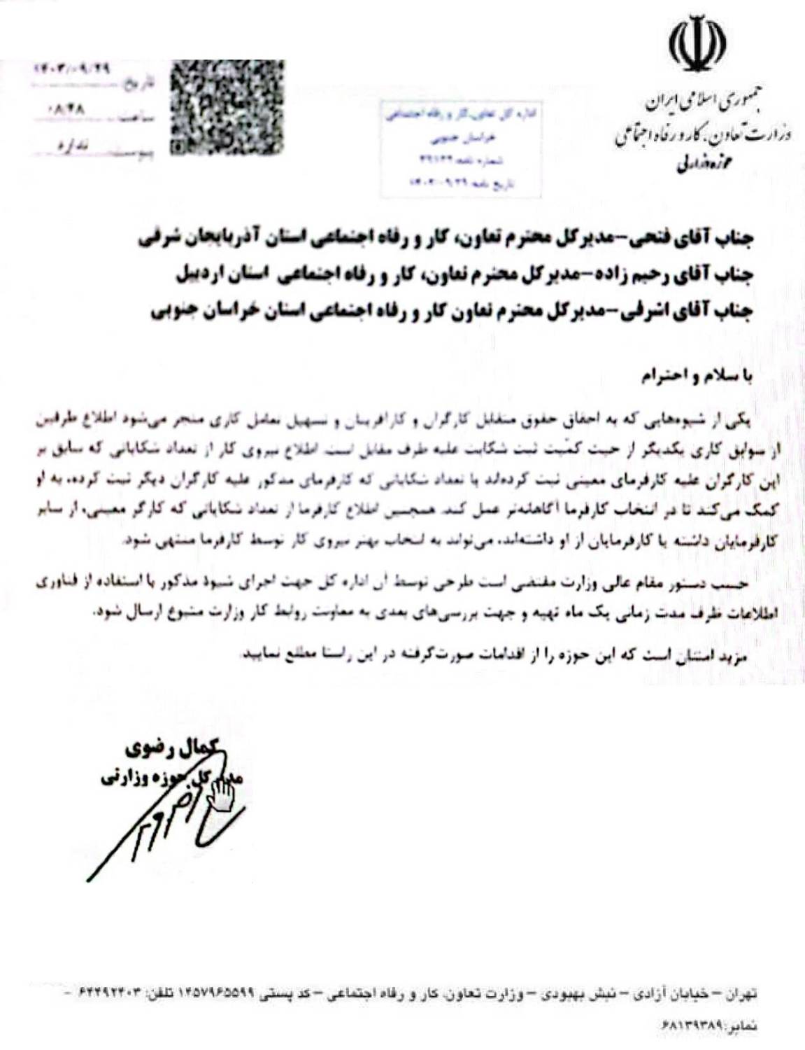 وزارت تعاون، کار و رفاه اجتماعی در حال تهیه طرحی است تا کارگران و کارفرمایان بتوانند پیش از شروع رابطه کاری، از سابقه شکایات طرف مقابل در ادارات کار اطلاع پیدا کنند.