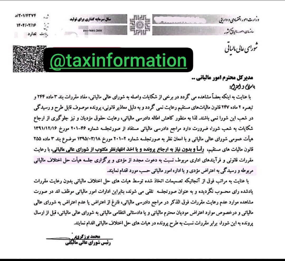 چنانچه مفاد مقررات بند ۳ ماده ۲۴۴ و یا تبصره ۲ ماده ۲۴۷ ق.م.م رعایت نگردیده باشد،پرونده قابل طرح در شورایعالی مالیاتی نمی باشد و مراجع دادرسی با رعایت مقررات و فرآیندهای اداری مربوط،نسبت به دعوت مجدد مودی حسب مورد اقدام نمایند.