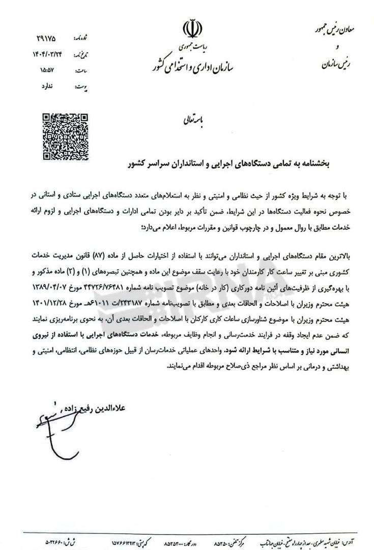 بخشنامه به تمامی دستگاه های اجرایی و استانداران سراسر کشور