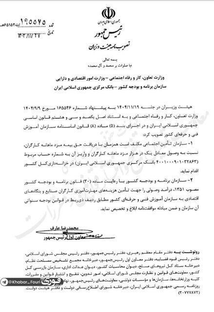 تصویبنامه وصول یک در هزار مزد ماهانه کارگران ابلاغ شد